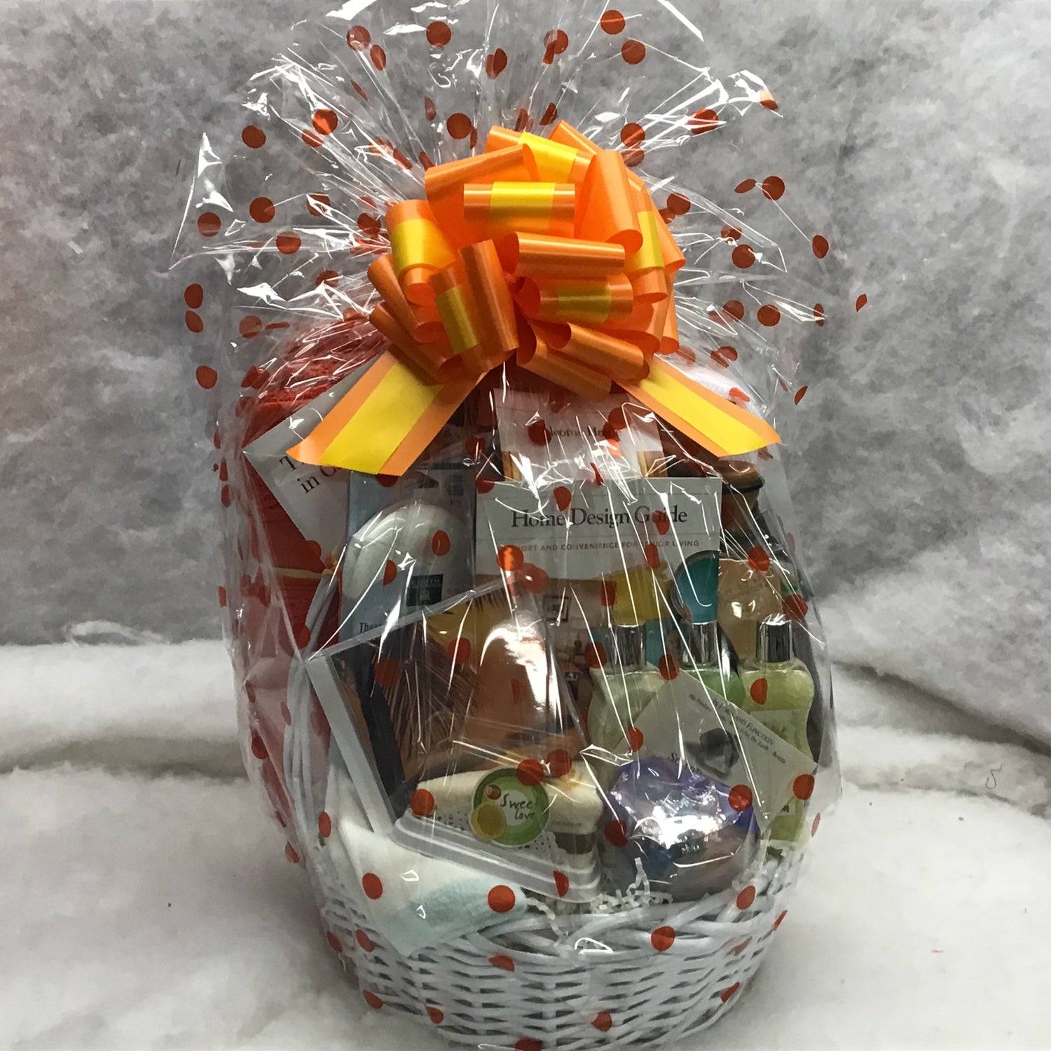 This is an ahh basket for women who just want to relax! Products include “sole food” for the feet, cake slice shape washcloth, bath pillow, bath salts, body lotion, rock soap, relaxing C.D., towel, comfort wrap for neck and thermal socks for those cold winter days. AAH!